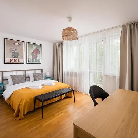 Apartament wyposażony jest w udogodnienia do samodzielnego przygotowywania posiłków, w tym w aneks kuchenny oraz jadalnię. Aby zwiedzić pozostałą część Warszawy, Goście mogą również wsiąść do autobusu na przystanku Nugat 01, który leży w 950 metrach.